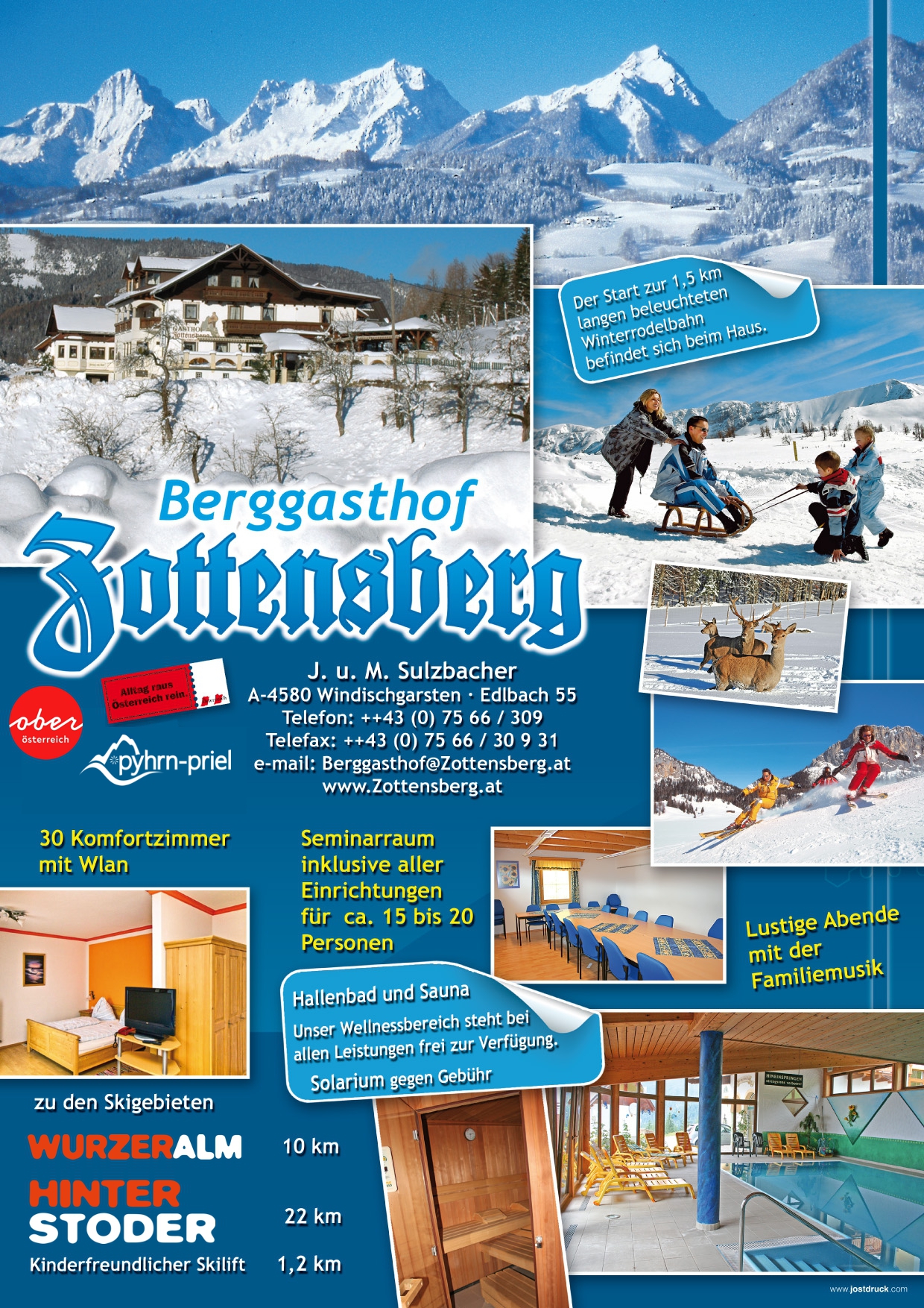 Herzlich Willkommen am Berggasthof Zottensberg! Umrahmt von Hallermauern und Sengsengebirge, mitten in der Pyhrn-Priel Region gelegen, besticht unser Gasthof/Hotel durch ein idyllisches und gemütliches Ambiente.