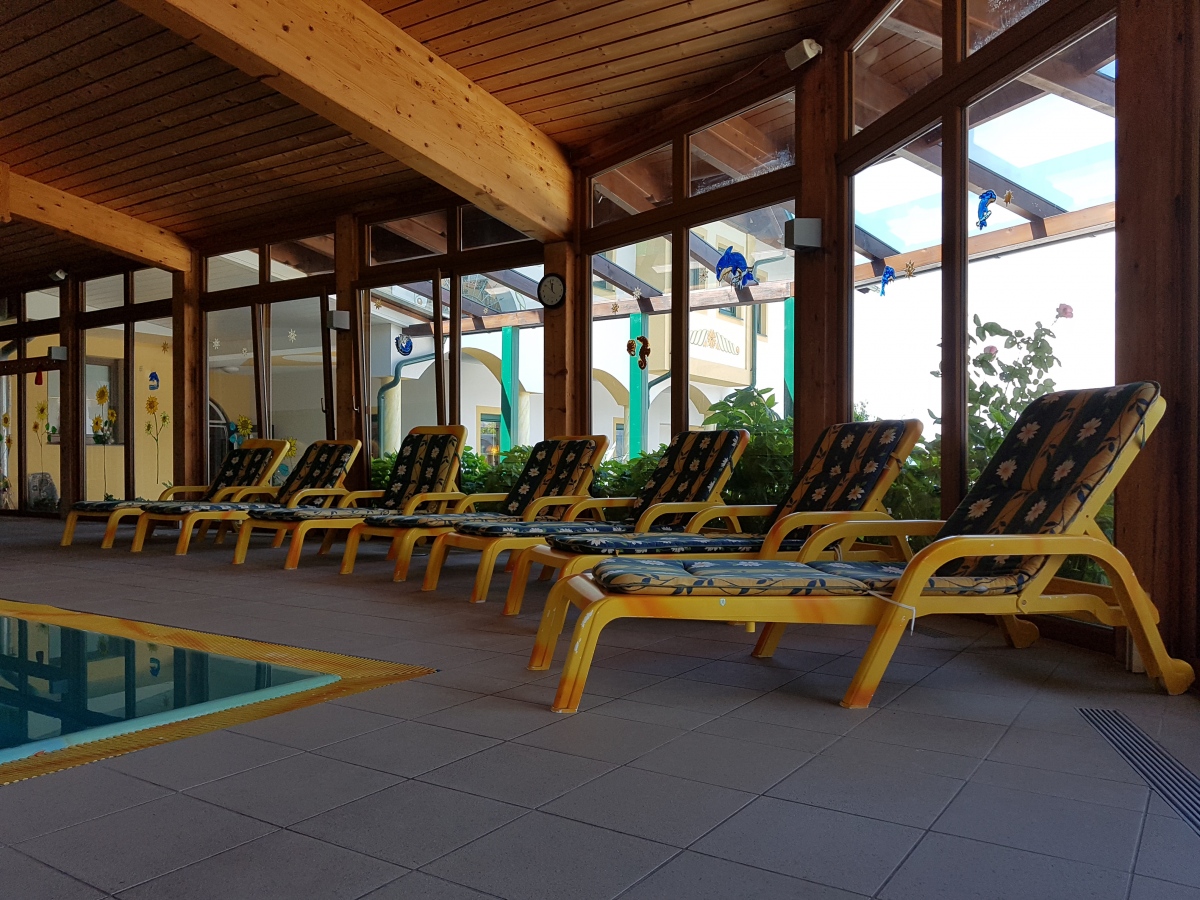 Genießen Sie den Ausblick über unsere Bergkulisse und lassen Sie Ihre Seele baumeln. Unser 10m x 5m großes Panoramhallenbad steht den Hausgästen frei zur Verfügung.
